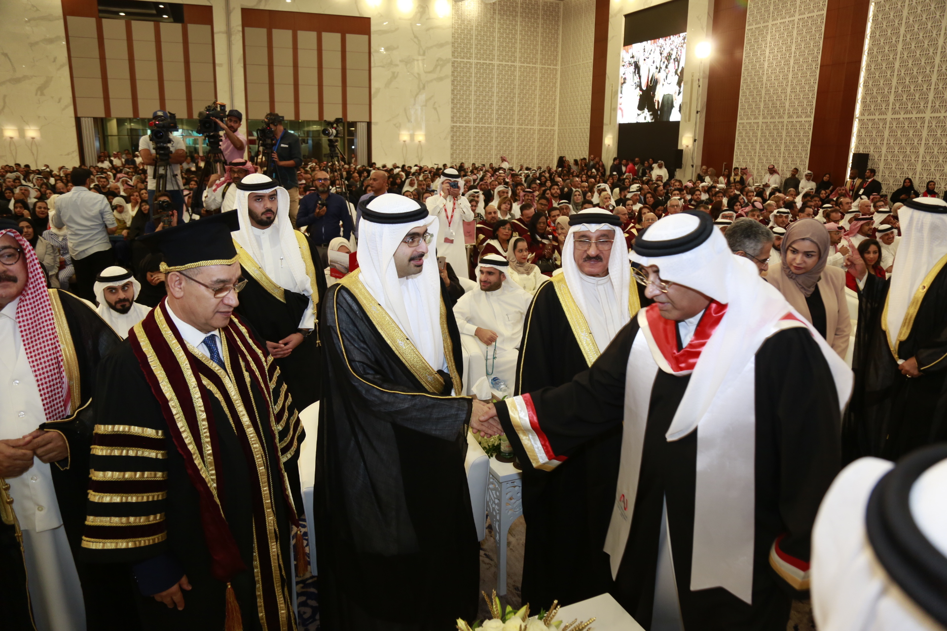 وأكد أن ما حققته الجامعة من نجاح جاء بمثابة الثمرة اليانعة من ثمار المشروع الإصلاحي الكبير لحضرة صاحب الجلالة الملك حمد بن عيسى آل خليفة، عاهل البلاد المفدى حفظه الله ورعاه، وصاحب السمو الملكي الأمير خليفة بن سلمان آل خليفة رئيس الوزراء الموقر حفظه الله ورعاه، والذي لم يدخر جهدًا في سبيل النهوض بمسيرتنا التعليمية ووضعها على منصات التفوق العلمي، والإبداع التنويري، وصاحب السمو الملكي الأمير سلمان بن حمد آل خليفة ولي العهد نائب القائد الأعلى النائب الأول لرئيس مجلس الوزراء حفظه الله ورعاه الذي وضع اللمسات النهائية على المخطط العمراني المتكامل لمدينة سلمان النموذجية لتكون الجامعة الأهلية في مركز قلبها النابض وفي محور حركتها الدائبة منارة علمية شامخة وقيثارة إبداع وإشعاع حضاري على مر الأزمنة والعصور.