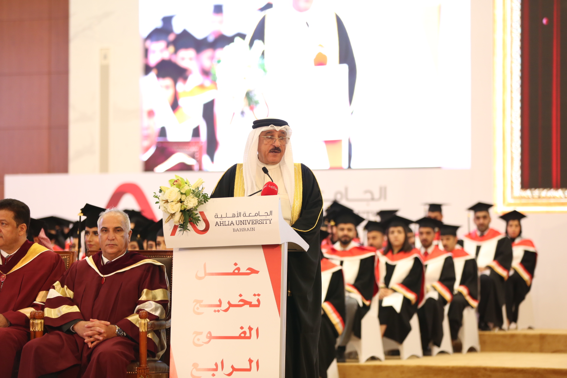 من ناحيته، أكد الدكتور منصور العالي رئيس الجامعة الأهلية في كلمة له أن منظومة التعليم والمعرفة بفضل الدعم والرعاية الكريمة من صاحب السمو الملكي رئيس الوزراء قطعت خطوات كبيرة على مختلف الأصعدة التعليمية والبحثية والمجتمعية، معربا عن خالص الشكر والتقدير والعرفان لسموه على رعايته الكريمة للحفل.
