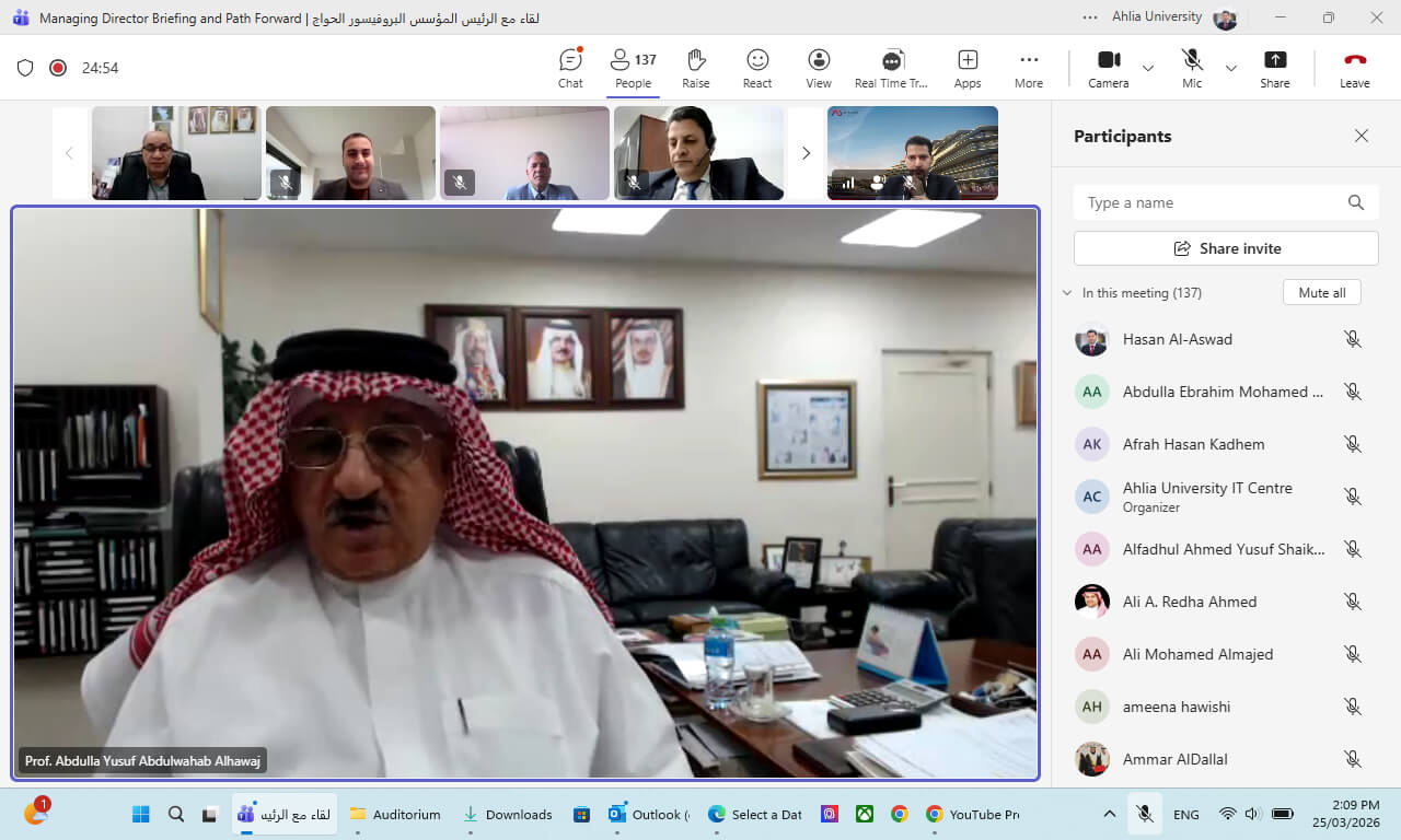 Ahlia University has reaffirmed its commitment to advancing the quality of education and ensuring the continuity of the academic process through an expanded virtual meeting