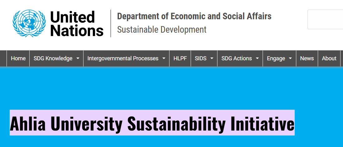 Ahlia University is committed to knowledge sharing therefore, AU reports annually the major achievements against UNSDGs and share it voluntary through United Nations Higher Education Sustainability Initiative (HESI) Platform. The platform includes progress tracking on the committed actions which includes integration of UNSDGs in the curriculum to support UNSDG4. For more information, please see: UN HESI – Platform Commitment Ahlia University Sustainability Initiative | Department of Economic and Social Affairs