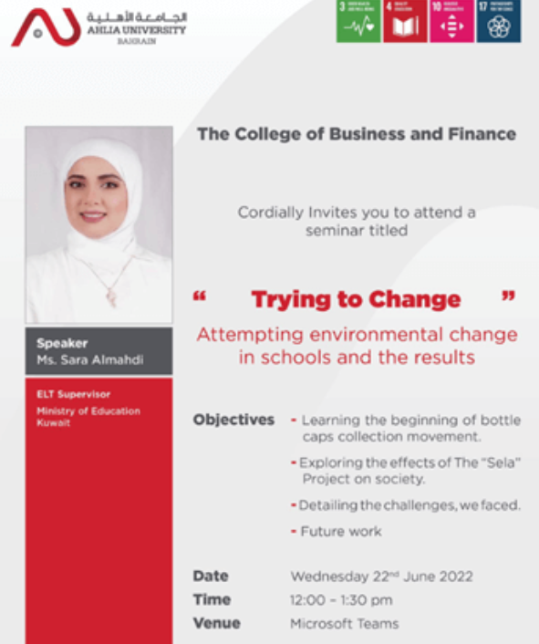 The Ahlia Sustainability Club is a passionate and proactive group of students committed to fostering sustainable practices and raising awareness about environmental issues. Their initiatives align with Ahlia University's broader commitment to sustainability and the United Nations Sustainable Development Goals (SDGs).